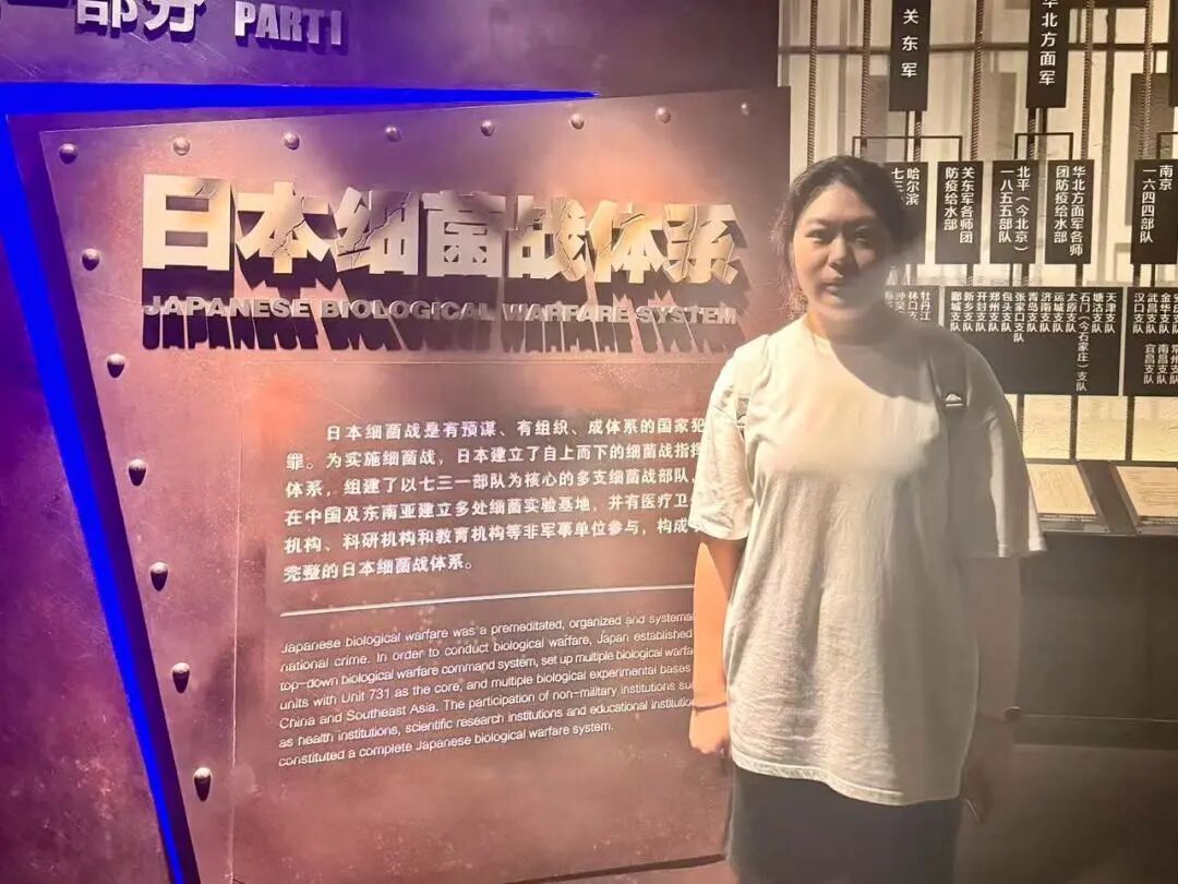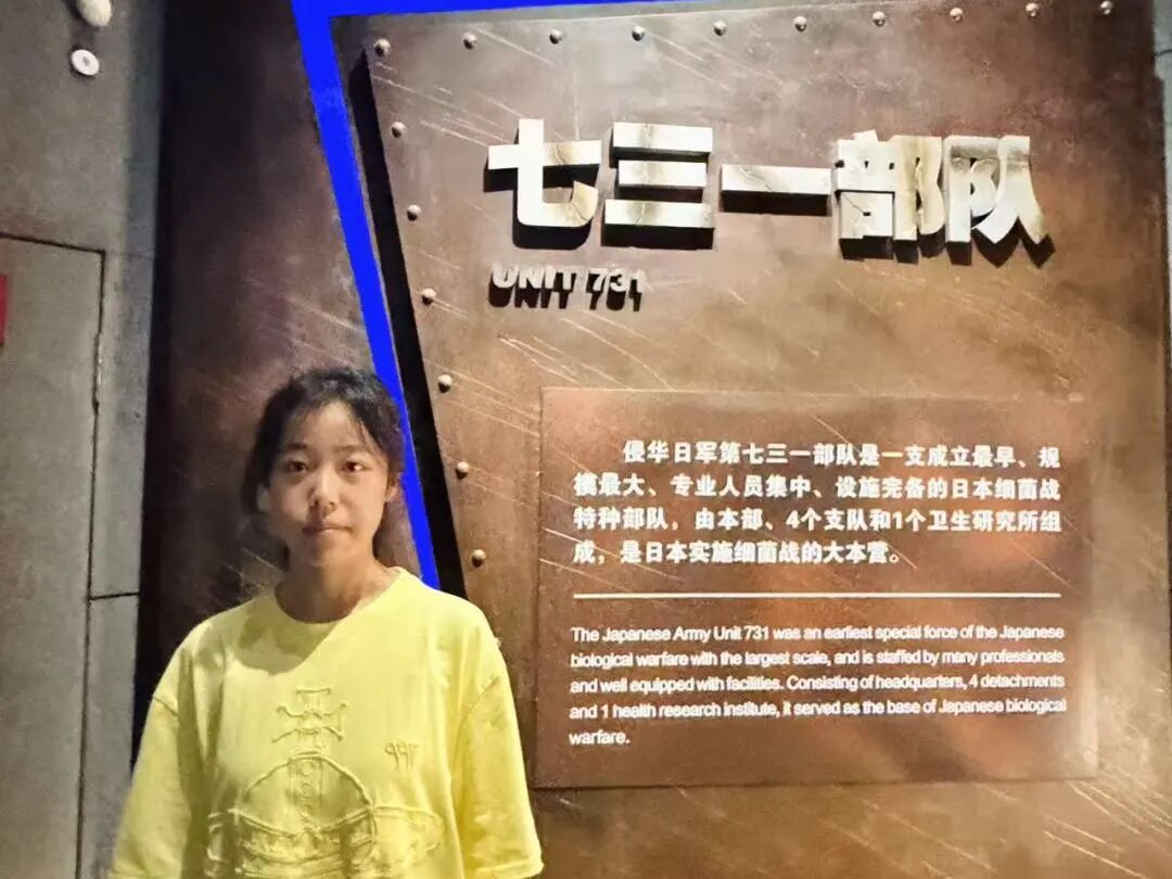 走进哈尔滨市731遗址的那一刻,夏日的燥热瞬间被沉重取代。灰黑色的建筑沉默矗立,玻璃展柜里的实验器具、泛黄的文件和受害者遗物,无声诉说着那段不忍卒读的历史。听着讲解员讲述日军当年的暴行,看着复原场景中简陋的囚室和冰冷的实验设备,心脏阵阵抽紧。那些数字不再是课本上的文字,而是一个个鲜活生命的消逝。作为新时代大学生,我们或许无法改变历史,但必须铭记这段伤痛。铭记不是为了延续仇恨,而是为了守护和平,让“落后就要挨打”的警钟永远长鸣,用知识和力量让这样的悲剧不再重演。