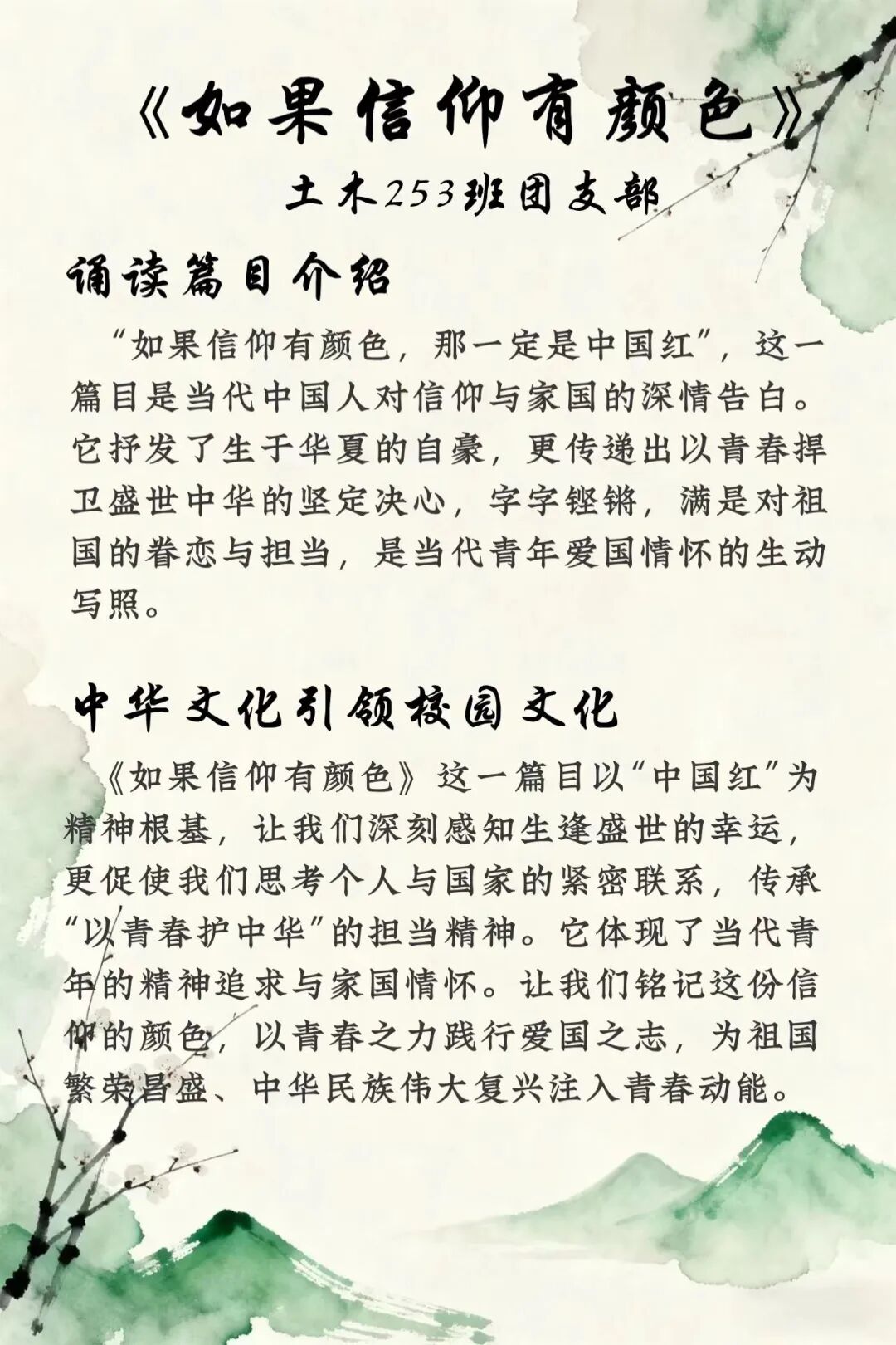 为深入学习贯彻习近平新时代中国特色社会主义思想,引导广大青年诵读中华经典、抒发爱国情怀,弘扬中华优秀传统文化,推进中华文化引领校园文化,引导学生铸牢中华民族共同体意识。按照《大连民族大学2025年校园文化艺术节暨铸牢中华民族共同体意识教育月实施方案》要求,学院团委组织开展“道中华之美,美中华之道”第四届团支部中华经典诵读比赛。现在,“最佳人气奖”投票通道正式开启。