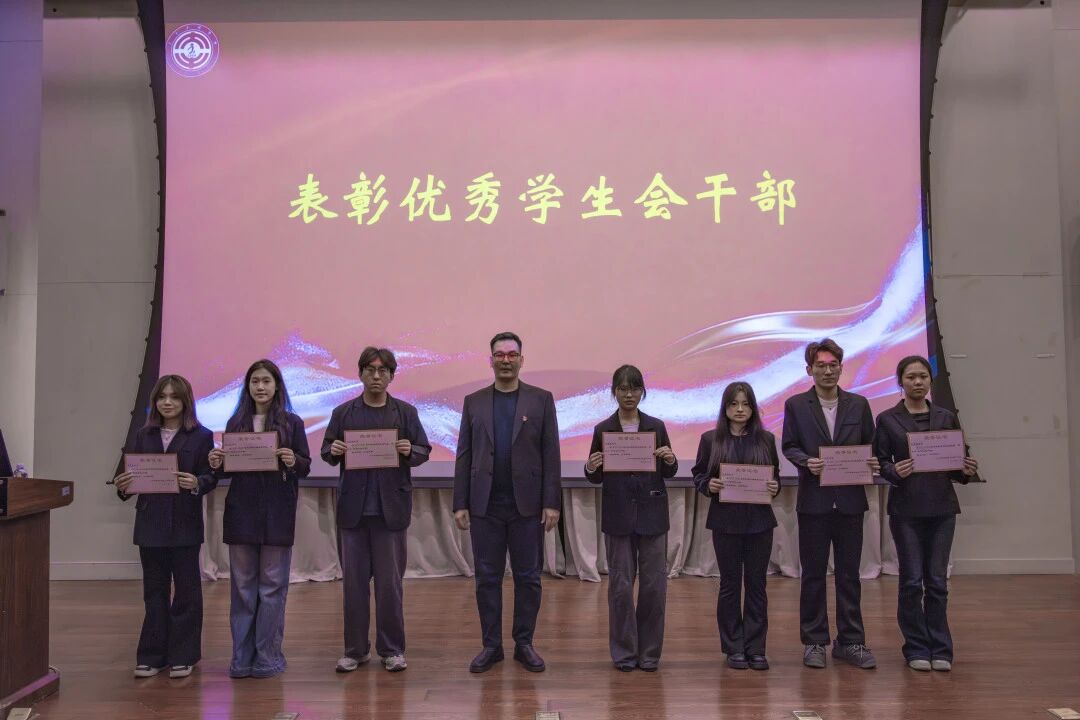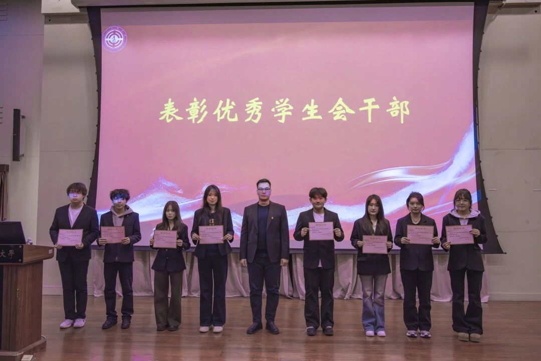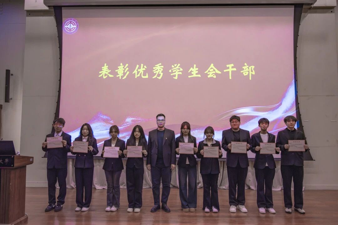 随后,大会进入优秀学生会干部表彰环节。学院团委书记阿依丁·米拉提老师宣读表彰名单,并为获奖同学颁发奖状,会上对本学期在各项工作中表现突出的学生干部予以表彰,获奖代表依次上台领奖。这份荣誉是对他们恪尽职守、实干担当的充分肯定。