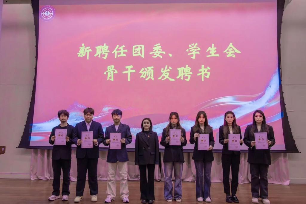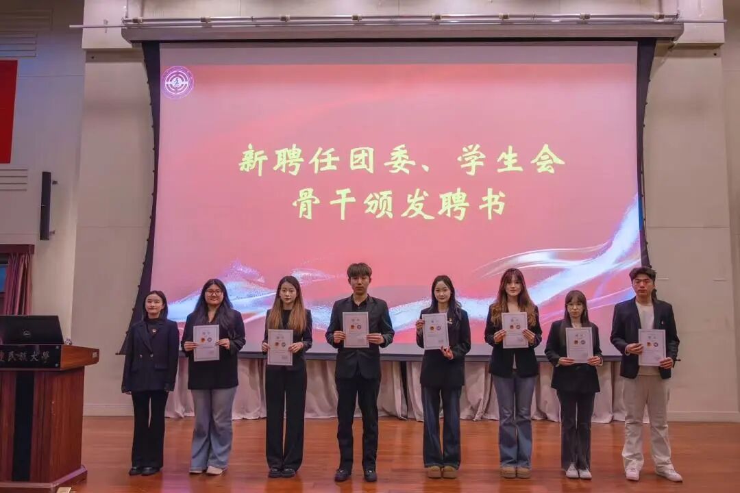 大会第一项议程为新任团委、学生会骨干聘书颁发仪式。学院学生工作办公室副主任曲颖老师宣读聘任名单,并为新骨干逐一颁发聘书。这份崭新的聘书,既是对他们过往努力的肯定,更是赋予其履职尽责的责任与期许。
