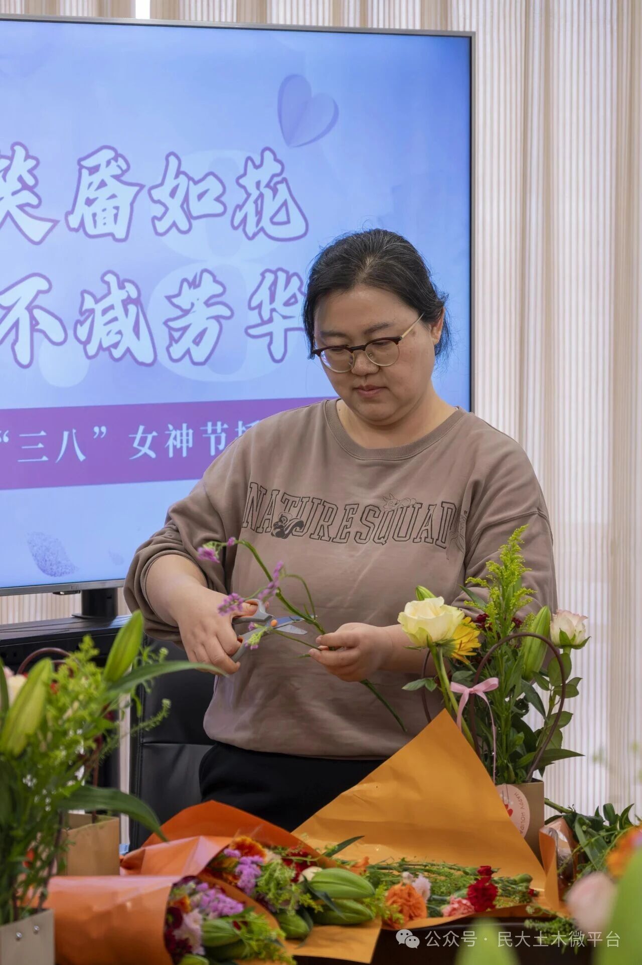 春风拂校园,花开敬芳华。3月8日,在学院会议室内,一场以“愿你笑靥如花,一生不减芳华”为主题的“三八”国际妇女节插花活动在此温馨启幕。学院女教职工们欢聚一堂,在花香氤氲、笑语盈盈中欢度专属节日,感受花艺之美,舒缓工作压力,凝聚奋进力量。